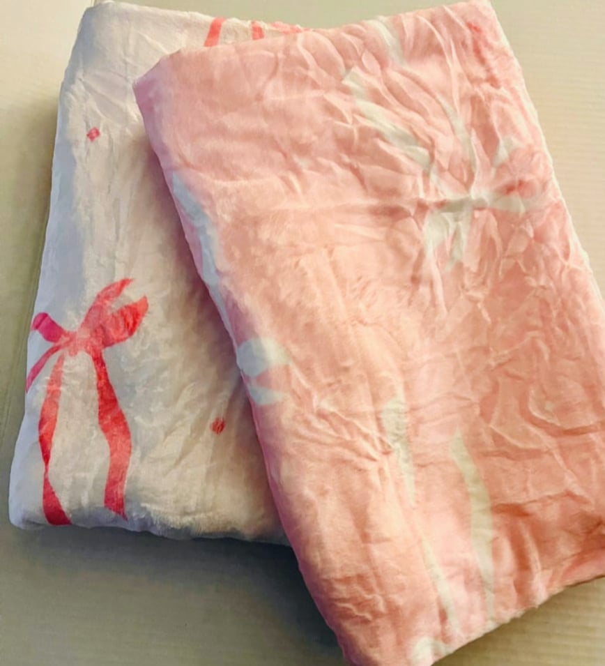 Slumber Coquette Party Blankets Faux Fur Microfiber Throw for Sleeping Movie Night Gifts, 40"x60"(Pink,Bowknot)